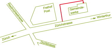 Anfahrt mit öffentlichem Verkehr: Bahnhof Dietlikon (S3 und S8); ab Bahnhof mit Bus Nr. 787 oder 765 bis Haltestelle Zentrum Brüttisellen.